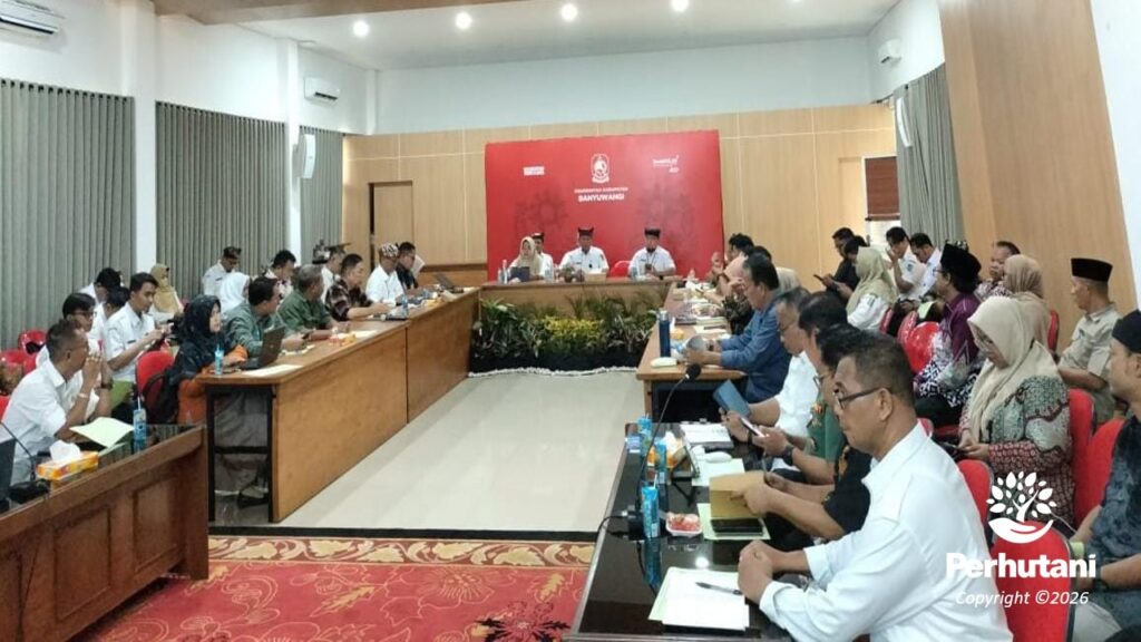 BANYUWANGI SELATAN, PERHUTANI (15/01/2026) | Dalam rangka memperkuat sinergi, kerja sama, daya dukung, dan sinkronisasi penyusunan Rancangan Awal Rencana Kerja Pemerintah Daerah (RKPD) Kabupaten Banyuwangi Tahun 2027, Pemerintah Kabupaten Banyuwangi menggandeng Perhutani Banyuwangi Raya yang terdiri dari Kesatuan Pemangkuan Hutan (KPH) Banyuwangi Selatan, KPH Banyuwangi Barat, dan KPH Banyuwangi Utara bersama dinas terkait serta pemangku kepentingan lainnya dalam Forum Diskusi Publik (FDP) di Kantor Pemerintah Kabupaten Banyuwangi, Rabu (14/01).