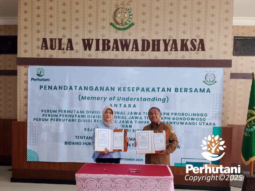 BANYUWANGI UTARA, PERHUTANI (29/09/2025) | Perhutani Kesatuan Pemangkuan Hutan (KPH) Banyuwangi Utara bersama Kejaksaan Negeri Situbondo menandatangani Memorandum of Understanding (MoU) terkait penanganan permasalahan hukum di bidang Perdata dan Tata Usaha Negara (Datun), bertempat di aula Kejaksaan Negeri Situbondo, Senin (29/9).