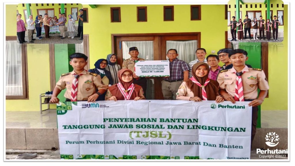 TASIKMALAYA, PERHUTANI (01/12/2022) | Perhutani Kesatuan Pemangkuan Hutan (KPH) Tasikmalaya melalui program Tanggung Jawab Sosial dan Lingkungan (TJSL) memberikan bantuan sarana prasarana Pramuka untuk Saka Wanabakti Tasikmalaya, bertempat di kantor KPH Tasikmalaya, Kamis (01/12/2022).