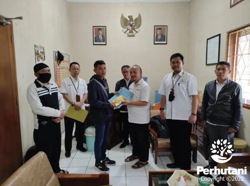 GARUT, PERHUTANI (27/06/2022) | Perhutani Kesatuan Pemangkuan Hutan (KPH) Garut memberikan santunan dari Asuransi Amanah Gita untuk Almarhum Cucu penyadap getah pinus di Tempat Penyimpanan Getah (TPG) Cikeris, Resort Pemangkuan Hutan (RPH) Mandalagiri, Bagian Kesatuan Pemangkuan Hutan (BKPH) Cikajang, bertempat di Kantor KPH Garut, Senin (27/06).