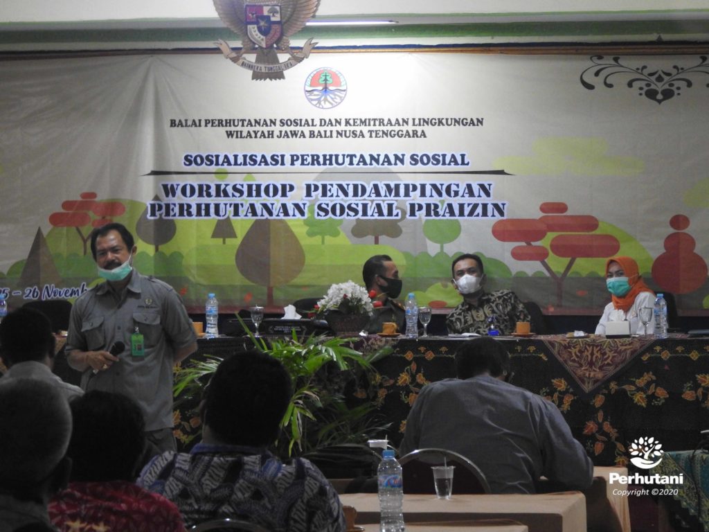MADURA, PERHUTANI (26/11/2020) | Perhutani Kesatuan Pemangkuan Hutan (KPH) Madura bersama Balai Perhutanan Sosial dan Kemitraan Lingkungan (BPSKL) Wilayah Jawa Bali Nusa Tenggara (Jabalnusra) mengadakan Workshop Pendampingan Perhutanan Sosial Pra Izin, bertempat di Hotel Wisata Camplong Sampang, Kamis (26/11).