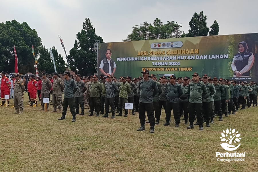 MOJOKERTO, PERHUTANI (23/07/2024) | Perum Perhutani Kesatuan Pemangkuan Hutan (KPH) Mojokerto turut hadir dalam Apel Siaga Gabungan Pengendalian Kebakaran Hutan dan Lahan (Karhutla) Tingkat Provinsi Jawa Timur yang digelar oleh Perhutani Divisi Regional Jawa Timur dan Dinas Kehutanan Provinsi Jawa Timur pada Selasa (23/7). Acara ini berlangsung di lapangan Desa Trawas, Kecamatan Trawas, Kabupaten Mojokerto, dan dipimpin oleh Pj. Gubernur Jawa Timur, Adhy Karyono, selaku Pengarah dalam Satuan Tugas Pengendalian Kebakaran Hutan dan Lahan Provinsi Jawa Timur.