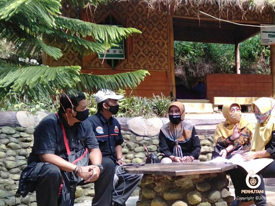 SUMEDANG, PERHUTANI (17/06/2020) | Kesatuan Pemangkuan Hutan (KPH) Sumedang bersama Dinas Pariwisata Kebudayaan Pemuda dan Olahraga (Disparbudpora) Kabupaten Sumedang kunjungi lokasi Wana Wisata Kampoeng Ciherang dalam rangka upaya penyesuaian Standar Operasional Wana Wisata di Era Adaptasi Kebiasaan Baru (AKB), Rabu (17/06).