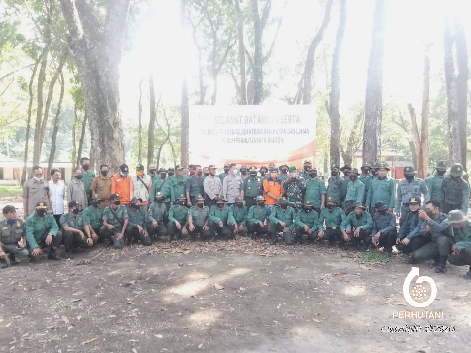 BANTEN, PERHUTANI (21/7/2020) Perhutani Kesatuan Pemangkuan Hutan (KPH) Banten bersama Pemerintah Kabupaten Lebak menggelar Apel Siaga Kebakaran Hutan dan Lahan (Karhutla) yang bertempat di Tempat Penampungan Kayu (TPK) Cibobos Resort Pemangkuan Hutan (RPH) Panyaungan Timur Bagian Kesatuan Pemangkuan Hutan (BKPH) Bayah Desa Cihara Kecamatan Panggarangan Kabupaten Lebak, Selasa (21/7).