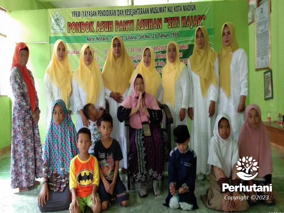 SARADAN, PERHUTANI (13/04/2023) | Jelang Hari Raya Idul Fitri 1444 H., yang tinggal beberapa hari lagi, Perhutani Kesatuan Pemangkuan Hutan (KPH) Saradan bersama Ikatan Istri Karyawan (IIK) Perhutani Cabang Saradan memberikan santunan kepada sejumlah anak Yatim Piatu asuhan Yayasan Siti Hajar Kota Madiun, yang diserahkan secara simbolis, Madiun, Kamis (12/04).