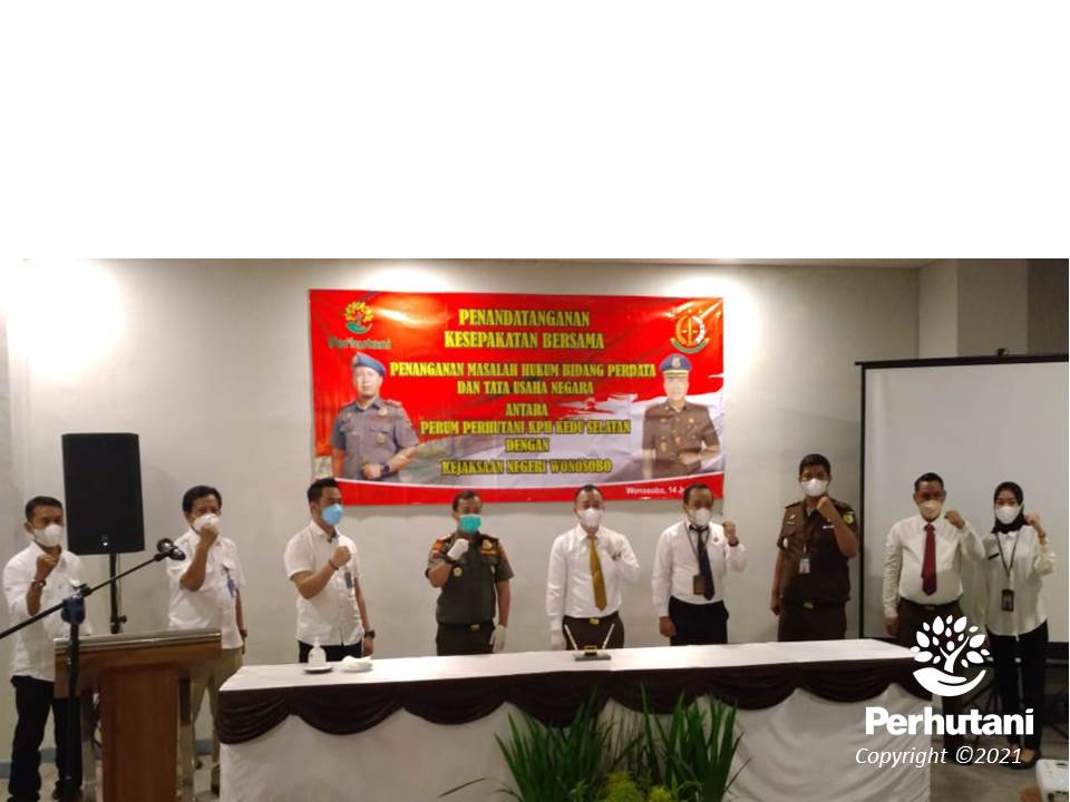 KEDU SELATAN, PERHUTANI (15/07/2021) | Administratur Perhutani Kesatuan Pemangkuan Hutan (KPH) Kedu Selatan bersama Kepala Kejaksaan Negeri (Kejari) Wonosobo melakukan penandatanganan kerjasama di bidang hukum Perdata dan Tata Usaha Negara (PTUN), bertempat di hotel Dafam Wonosobo, Rabu (14/07).