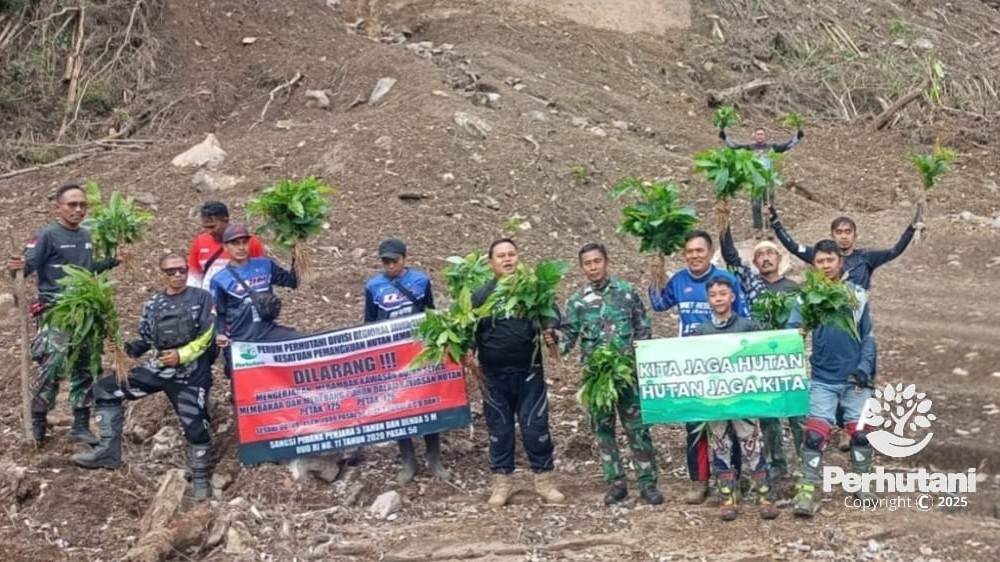 JEMBER, PERHUTANI (04/8/2025) | Perhutani Kesatuan Pemangkuan hutan (KPH) Jember bersama Komunitas Trail Jember mengadakan kegiatan penghijauan di hutan lindung Petak 125  Resort Pemangkuan Hutan(RPH) Sumbersalak dan Petak 126  RPH Sumberjati, Bagian Kesatuan Pemangkuan Hutan (BKPH) Sempolan, Senin (4/8).