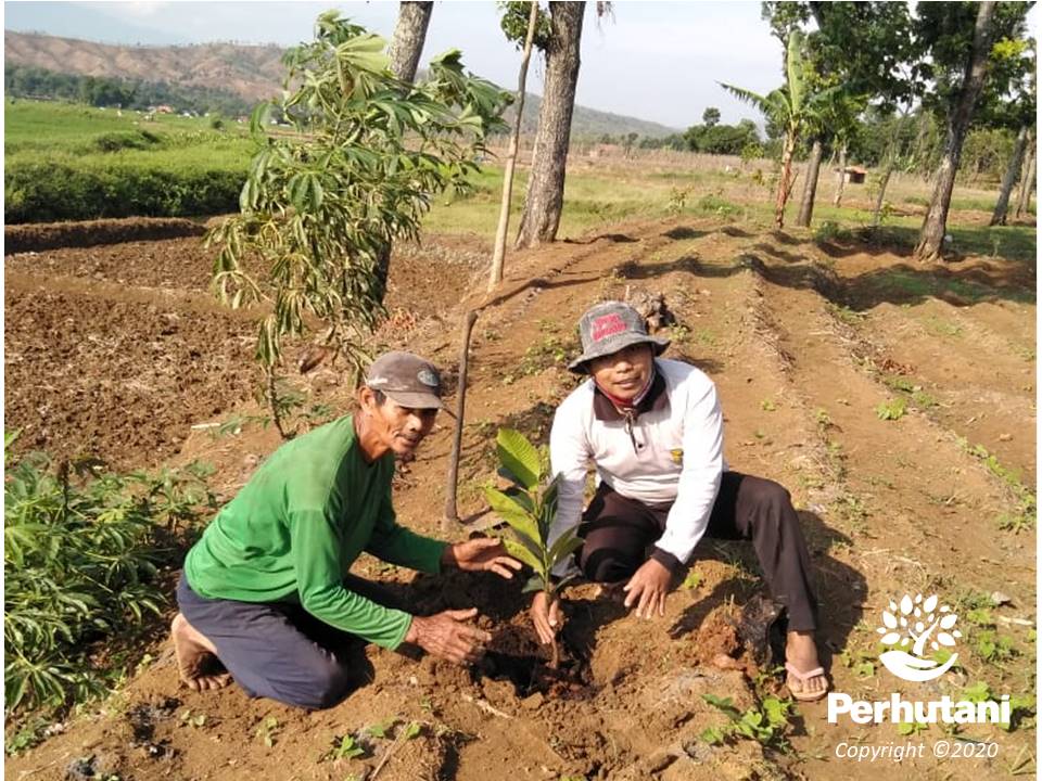 PEMALANG, PERHUTANI (14/11/2020) | Perhutani Kesatuan Pemangkuan Hutan (KPH) Pemalang melaksanakan penanaman pengkayaan dengan bibit tanaman buah-buahan di Lokasi Kawasan Perlindungan Setempat (KPS) bertempat di petak 114b, Resort Pemangkuan Hutan (RPH) Kejene, Bagian Kesatuan Pemangkuan Hutan (BKPH) Cipero, yang masuk dalam pangkuan Lembaga Masyarakat Desa Hutan (LMDH) Agro Lestari Desa Kejene, Kecamatan Randudongkal, Kabupaten Pemalang Sabtu (14/11).
