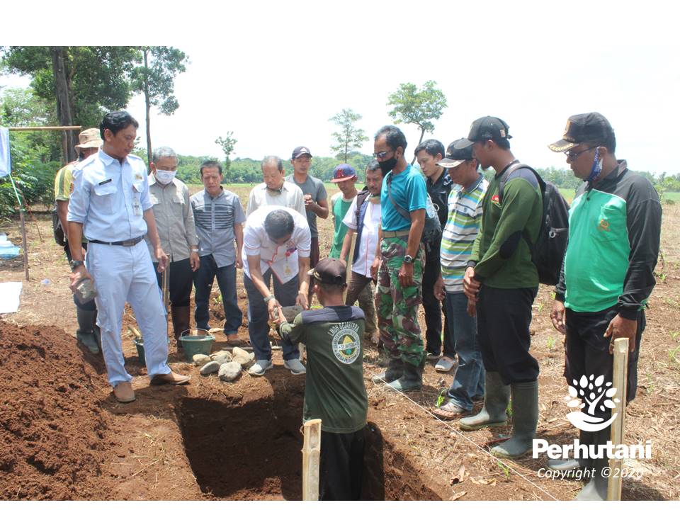 PEMALANG, PERHUTANI (11/11/2020) | Perhutani Kesatuan Pemangkuan Hutan (KPH) Pemalang melaksanakan tasyakuran dan peletakkan batu pondasi gerbang Wisata Rintisan Bumi Perkemahan (Buper) Peguyangan yang berada di petak 53, Resort Pemangkuan Hutan (RPH) Klapanunggal, Bagian Kesatuan Pemangkuan Hutan (BKPH) Bantarsari, yang masuk pangkuan wilayah Lembaga Masyarakat Desa Hutan (LMDH) Sejahtera, Rabu (11/11).