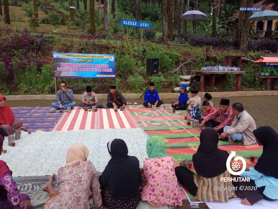 Hadir pada acara tersebut Asisten Perhutani BKPH Magelang Yudi Noviar beserta jajaran, Ketua dan pengurus LMDH Sleker Asri. Pada bakti sosial tersebut telah diserahkan bantuan kepada sejumlah 3 orang anak yatim dan 29 orang lansia.