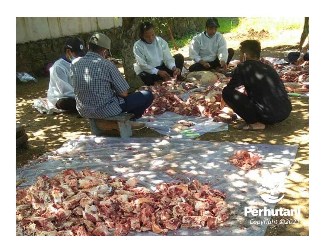 BANDUNG UTARA, PERHUTANI (22/07/2021) | Perhutani Kesatuan Pemangkuan Hutan (KPH) Bandung Utara merayakan Hari Raya Idul Adha 1442 Hijriah dengan memotong hewan kurban sebanyak 2 ekor kambing yang dilaksanakan di Kampung Cibeusi, Desa Cileunyi Wetan, Kecamatan Cileunyi, Kabupaten Bandung, Rabu (21/7).