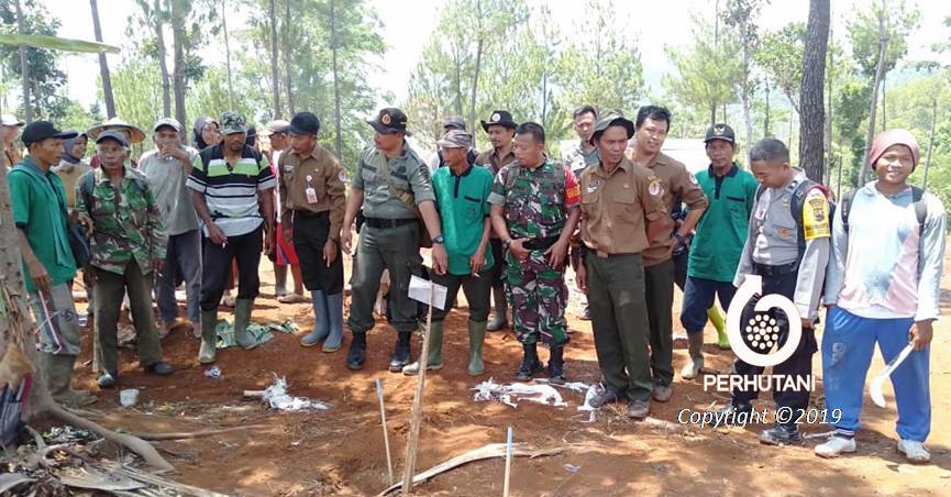 KEDU UTARA, PERHUTANI (26/11/2019) | Perhutani Kesatuan Pemangkuan Hutan (KPH) Kedu Utara bekerja sama dengan Babinsa, Babinkantibmas Kecamatan Singorojo dan Lembaga Masyarakat Desa Hutan (LMDH) Wana Rahayu Desa Kali Putih, Kecamatan Singorojo, Kabupaten Kendal mengadakan sosialisasi penanaman di hutan petak 47e, Resort Pemangkuan Hutan (RPH) Petung, Bagian Kesatuan Pemangkuan Hutan (BKPH) Candiroto, Selasa (26/11).