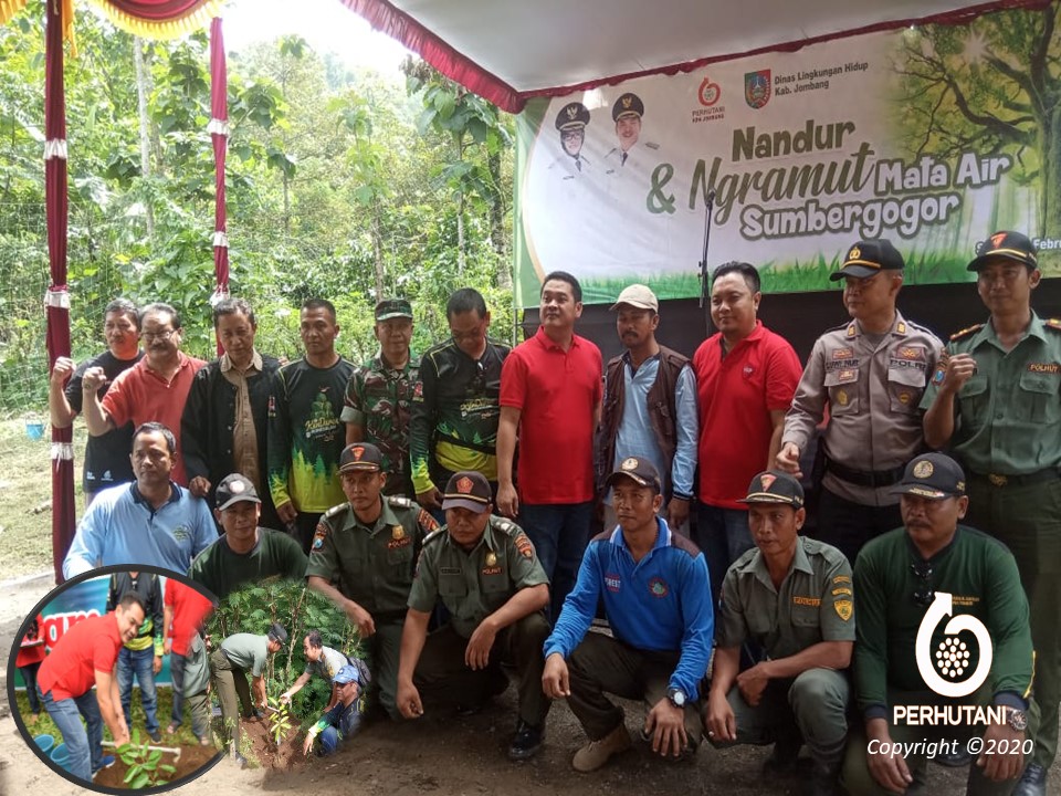 JOMBANG, PERHUTANI (01/02/2020) | Perhutani Kesatuan Pemangkuan Hutan (KPH) Jombang mengadakan penanaman bersama yang bertajuk “Nandur & Ngramut “ Mata Air Sumbergogor yang terletak di Dusun Sumbergogor, Kecamatan Wonosalam, Kabupaten Jombang, Jawa Timur, Sabtu (01/02)