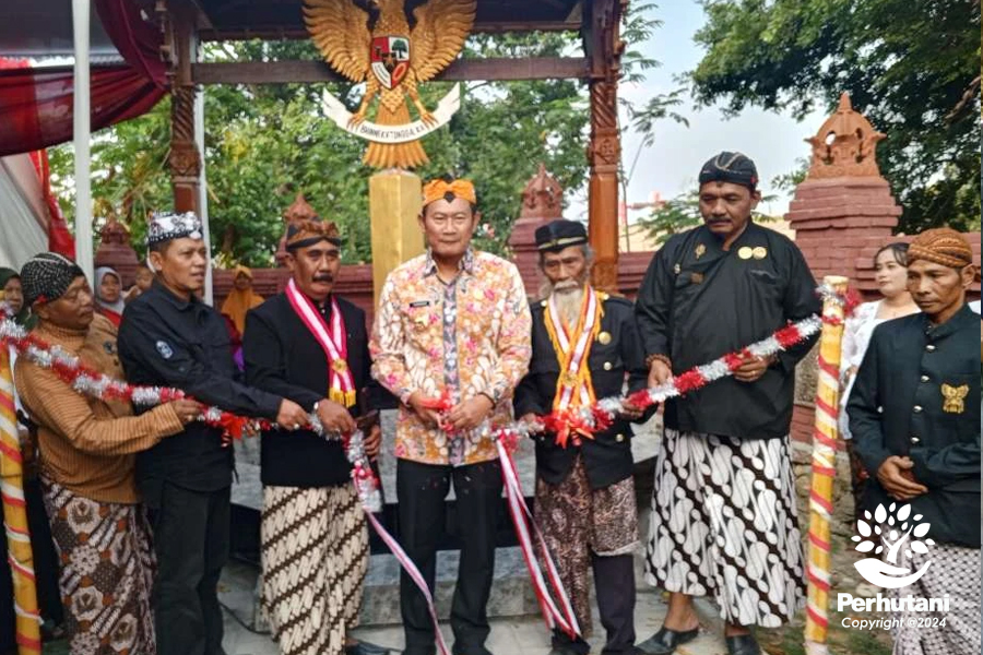MOJOKERTO, PERHUTANI (17/08/2024) | Perhutani Kesatuan Pemangkuan Hutan (KPH) Mojokerto bersama Pemerintah Kabupaten Lamongan dan Paguyuban Budaya (PB) Wilwatika turut mangayu bagyo menyambut perpindahan Ibu kota Jakarta ke Kota Nusantara (IKN), Kalimantan Timur, dengan menggelar upacara adat dan doa umat beragama serta penghayat kepercayaan di lokasi situs makam Nyai Andongsari, wilayah hutan Petak 27 G, Resort Pemangkuan Hutan (RPH) Blawi, Bagian Kesatuan Pemangkuan Hutan (BKPH) Ngimbang, masuk Hutan Lindung Gunung Ratu, pada Jumat (16/08).