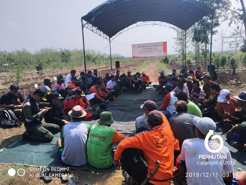 MAJALENGKA, PERHUTANI (12/12/2019) | Untuk lebih meningkatkan kepedulian terhadap tanaman dan hasil panen pertanian pada lokasi tumpangsari tanaman Kayu Putih, Perhutani Kesatuan Pemangkuan Hutan (KPH) Majalengka mengadakan kegiatan pembinaan dan penyuluhan terhadap para petani / penggarap hutan yang dilakukan bersama Penyuluh Pertanian Kabupaten Majalengka bertempat di petak 23 Resort Pemangkuan Hutan (RPH) Sukajaya, Bagian Kesatuan pemangkuan Hutan (BKPH) Cibenda, Rabu (11/12).