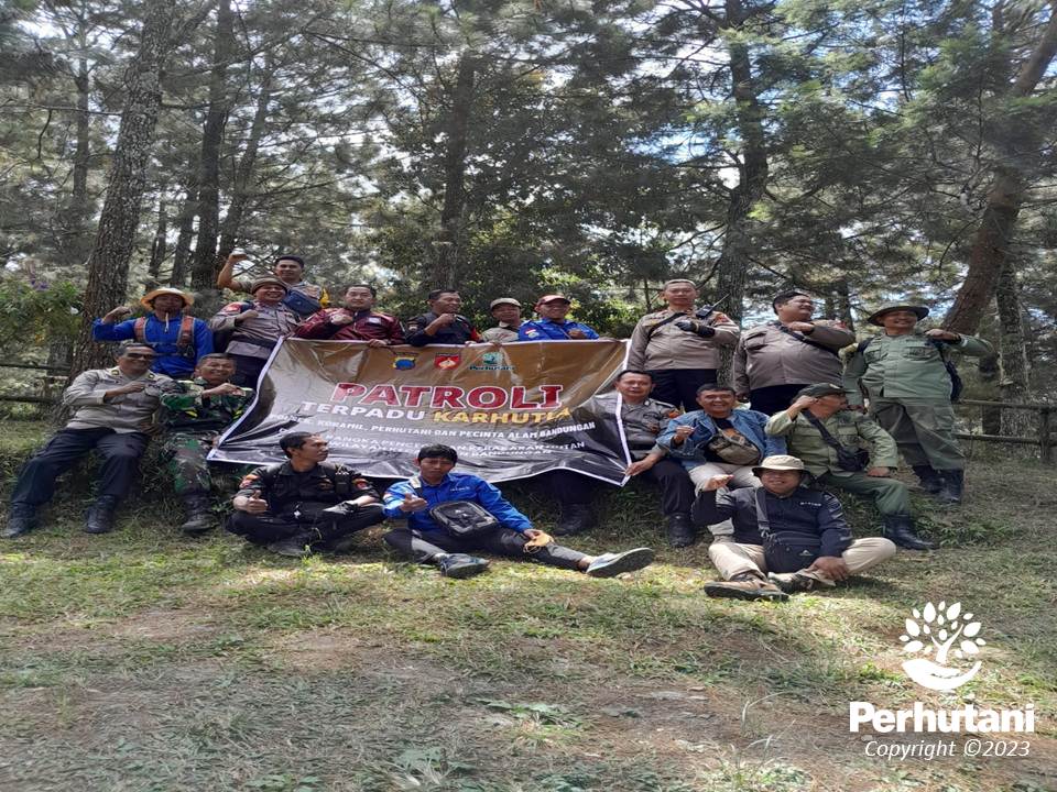 KEDU UTARA, PERHUTANI (18/08/2023) | Perhutani Kesatuan Pemangkuan Hutan (KPH) Kedu Utara melaksanakan patroli bersama Kepolisian Sektor (Polsek) Bandungan, Komando Rayon Militer (Koramil) Bandungan, Solidaritas Anak Kluwihan Peduli Alam (Sakpala) Basecamp Mawar dan Basecamp Perantunan, Pamswakarsa sekaligus pemberian bantuan berupa beras kepada warga masyarakat di Dusun Darum Desa Candi Kecamatan Bandungan dan warga Dusun Gintungan Desa Bandungan Kecamatan Bandungan Kabupaten Semarang, Jumat (18/08).