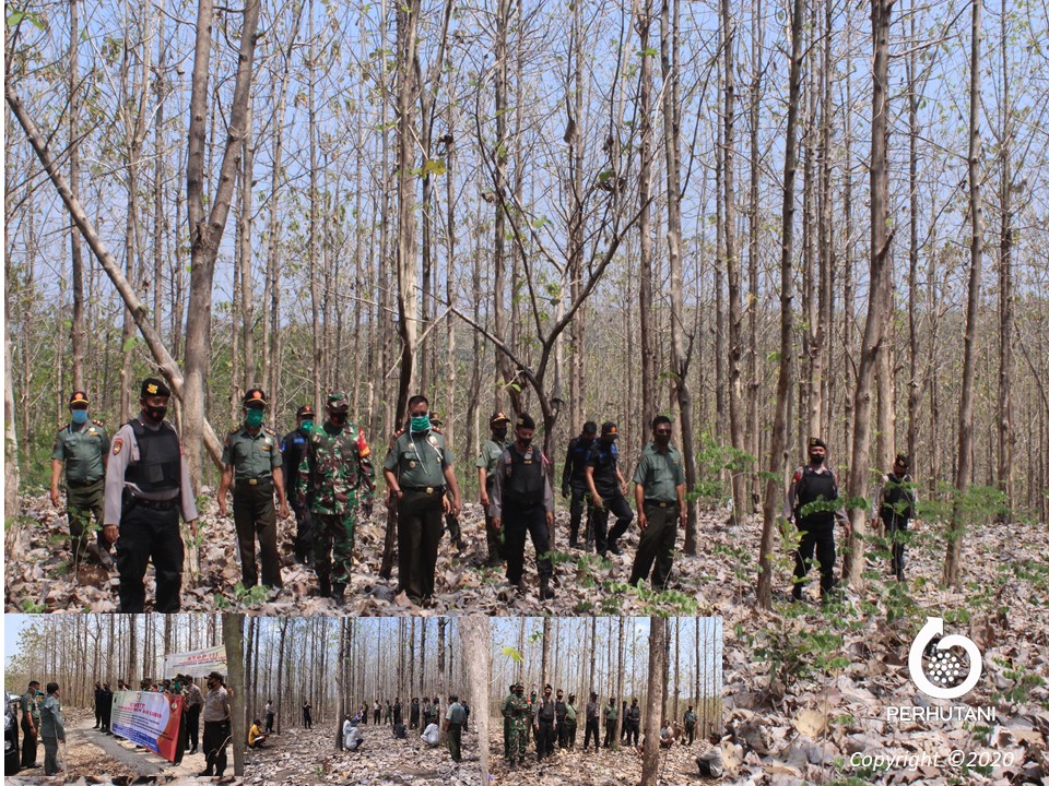TELAWA, PERHUTANI (10/09/2020) | Perum Perhutani Kesatuan Pemangkuan Hutan (KPH) Telawa bersama dengan Polres Sragen mengadakan patroli gabungan dalam rangka antisipasi kebakaran hutan dan lahan (Karhutla), Kamis (10/09).