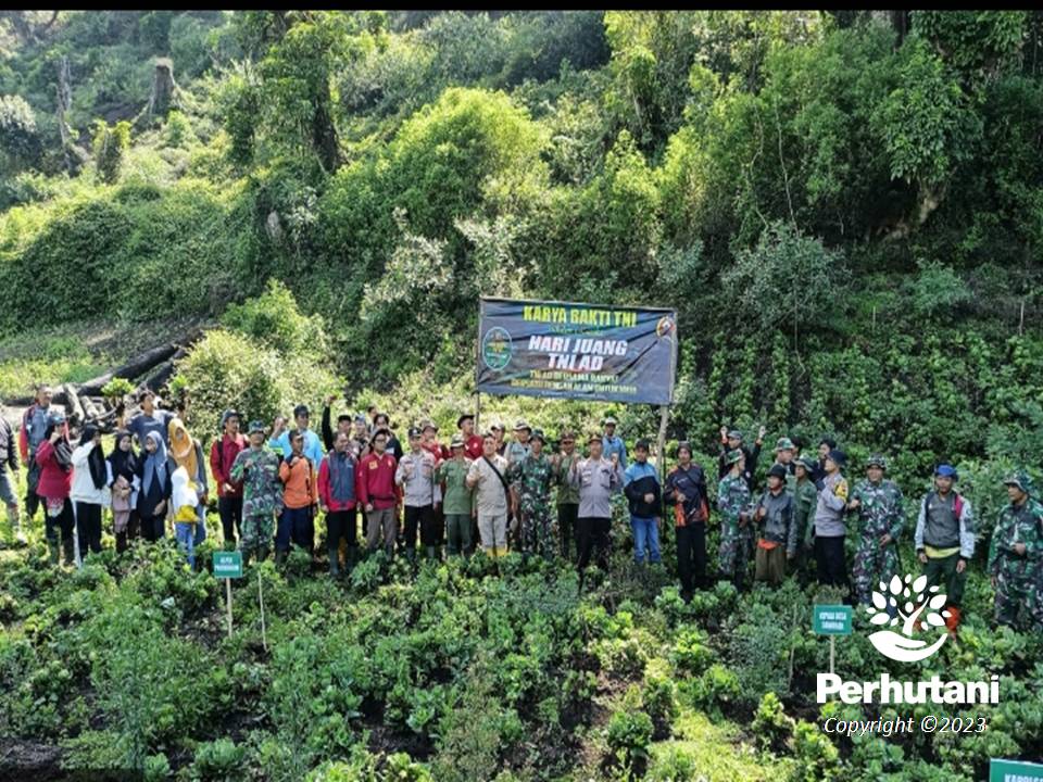 PEKALONGAN BARAT, PERHUTANI (15/12/2023) | Perhutani Kesatuan Pemangkuan Hutan (KPH) Pekalongan Barat bersama TNI dan segenap stakeholder di Kecamatan Sirampog serta unsur Pemerintah Kecamatan Sirampog melaksanakan penanaman pohon dalam Karya Bakti TNI peringatan Hari Juang TNI di wilayah Kecamatan Sirampog. Kegiatan dilaksanakan di petak 16A RPH Igirklanceng BKPH Paguyangan, Kamis (14/12).