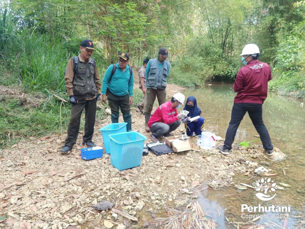 TUBAN, PERHUTANI (24/08/2022) |  Perhutani Kesatuan Pemangkuan Hutan (KPH) Tuban Bersama UPTD Dinas Lingkungan Hidup Kabupaten Tuban melakukan pengambilan sampling untuk uji lab debit air di beberapa sungai di wilayah kerja Perhutani KPH Tuban, pada Selasa (22/08).