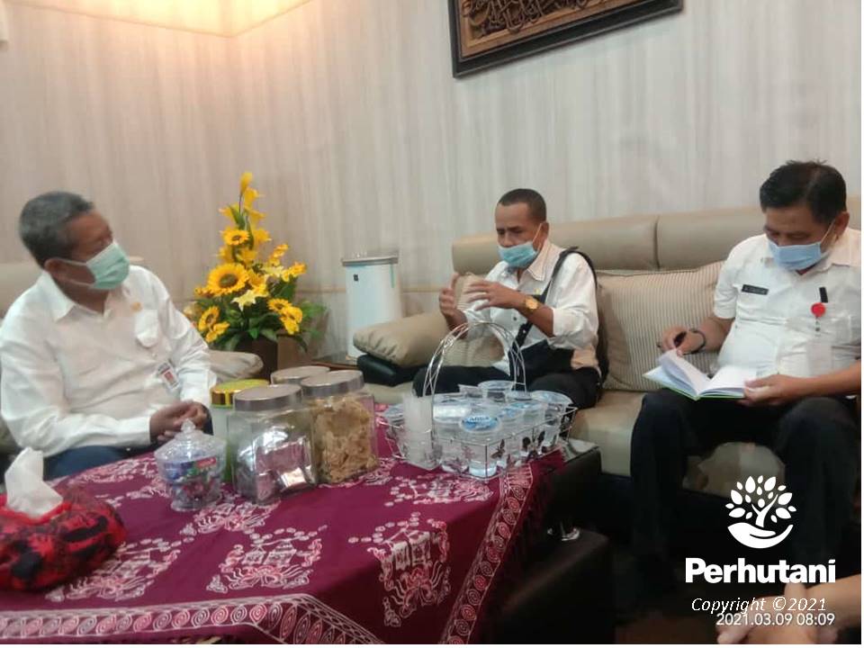 PEMALANG, PERHUTANI (10/03/2021) | Perhutani Kesatuan Pemangkuan Hutan (KPH) Pemalang melaksanakan pertemuan membahas pengembangan Agrowisata Learning Center (ALC) bersama Sekertaris Daerah (Sekda) Kabupaten Pemalang bertempat di ruang kerjanya, Selasa (09/03).