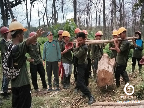 Hadir dalam kegiatan tersebut Kasi Perencanaan dan Pengembangan Bisnis Titus Ariyanto dan Asisten Perhutani  BKPH Ngliron Yudi Susanto  memberikan materi praktek lapangan di bidang produksi tebangan.