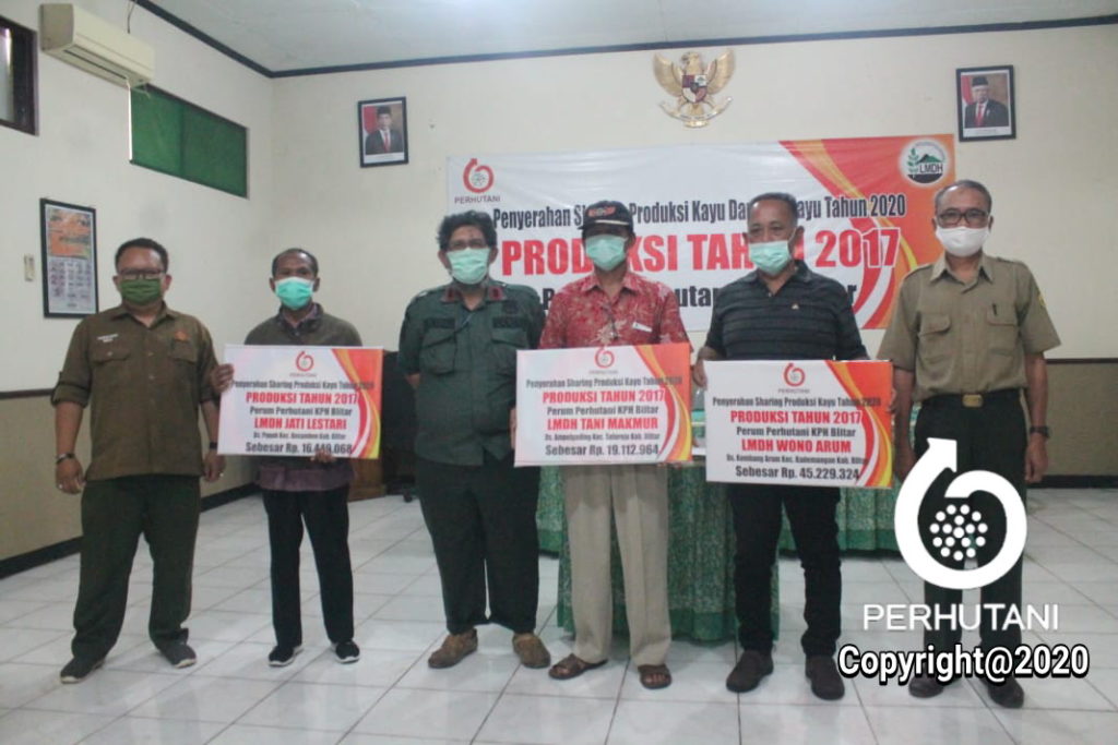 BLITAR, PERHUTANI (16/04/2020) | Perhutani Kesatuan Pemangkuan Hutan (KPH) Blitar gelontorkan dana bagi hasil (sharing) produksi kayu kepada 55 Lembaga Masyarakat Desa Hutan (LMDH) di wilayahnya dengan total sebesar Rp 171 juta lebih yang dilaksanakan di Kantor KPH Blitar pada Rabu (15/04).