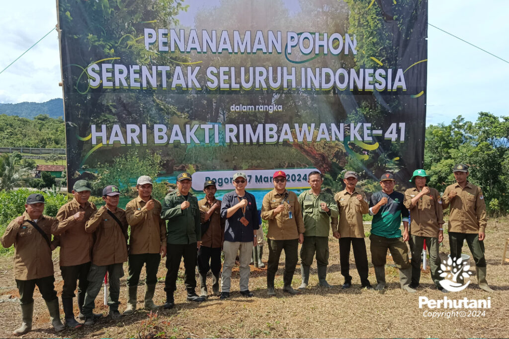 BOGOR, PERHUTANI (10/03/2024) | Perum Perhutani Kesatuan Pemangkuan Hutan (KPH) Bogor bersama Kementerian Lingkungan Hidup dan Kehutanan (LHK) Balai Pengelolaan Daerah Aliran Sungai (BPDAS) Citarum Ciliwung ikuti penanaman serentak seluruh Indonesia dalam rangka Hari Bakti Rimbawan ke-41, berlokasi di Situ Citatah, Desa Barengkok, Kecamatan Jasinga, Kabupaten Bogor, pada hari Kamis (07/03).