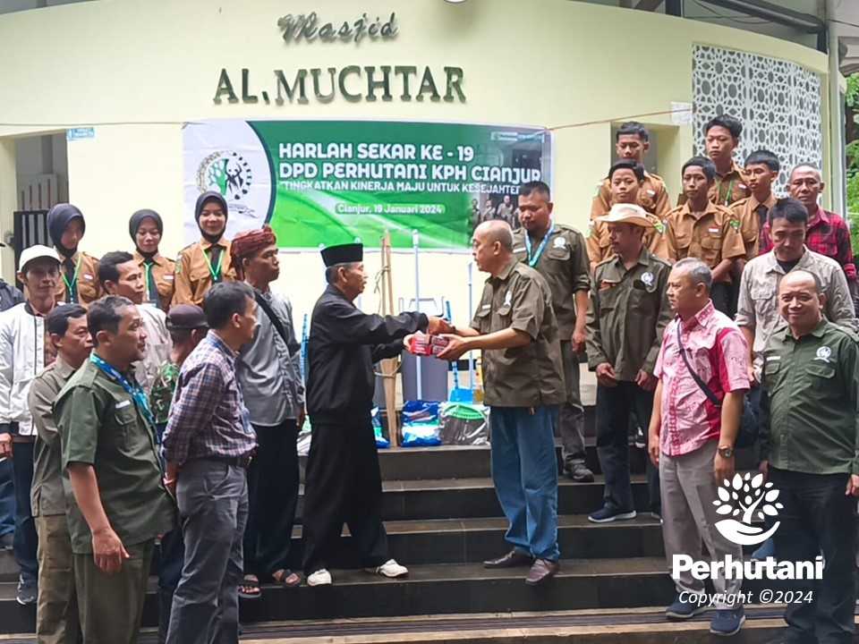 CIANJUR, PERHUTANI (20/01/2024) | Dalam rangka memperingati hari lahir (Harlah) Serikat Karyawan (Sekar) Perhutani Ke-19, Dewan Pengurus Daerah (DPD) Serikat Karyawan (Sekar) Perum Perhutani Kesatuan Pemangkuan Hutan (KPH) Cianjur menggelar kegiatan bakti sosial, bertempat di Masjid Al-Muchtar Cikadali wilayah kerja Bagian Kesatuan Pemangkuan Hutan (BKPH) Ciranjang Utara, pada hari Jum’at (19/01).
