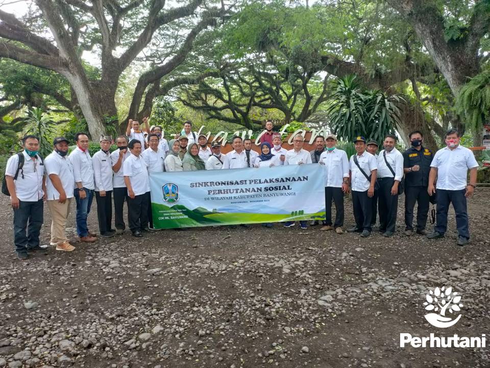 BANYUWANGI SELATAN, PERHUTANI (13/11/2020) | Perhutani Kesatuan Pemangkuan Hutan (KPH) Banyuwangi Selatan bersama Cabang Dinas Kehutanan (CDK) Banyuwangi lakukan sinkronisasi Perhutanan Sosial dalam rangka upaya mendukung kelancaran tahapan pelaksanaan Perhutanan Sosial Kelompok Tani Hutan (KTH) dan Lembaga Masyarakat Desa Hutan (LMDH) di wilayah Banyuwangi Selatan, bertempat di Wisata De Djawatan Forest, Rabu (11/11).