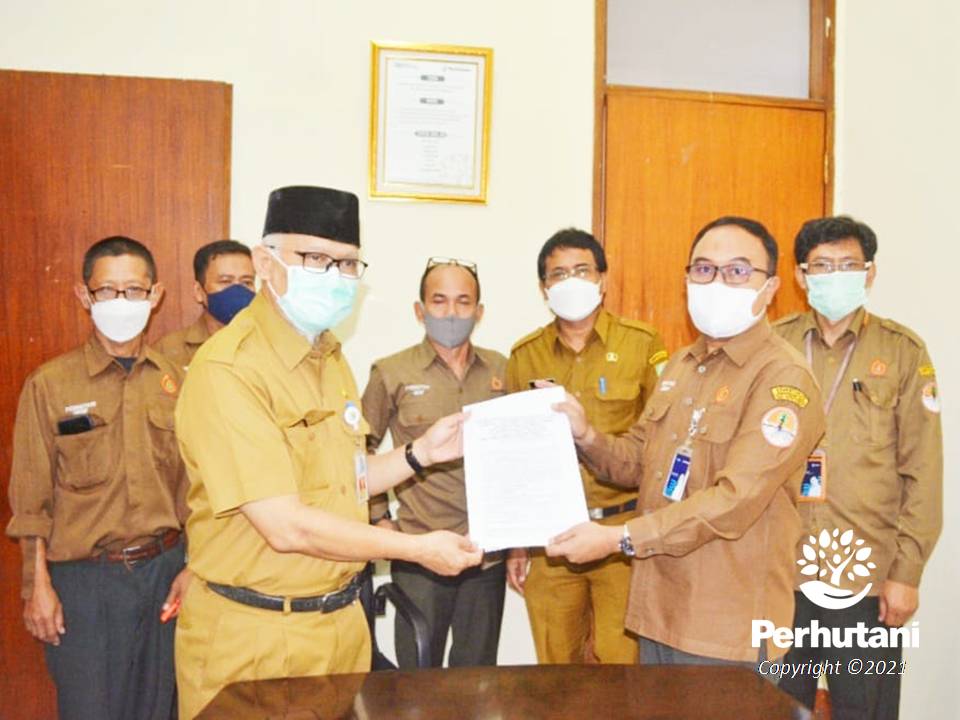 BOGOR, PERHUTANI (20/04/2021) | Perhutani Kesatuan Pemangkuan Hutan (KPH) Bogor melakukan penandatanganan Naskah Kesepakatan Kerjasama (NKK) dalam negosiasi rencana kerjasama Kemitraan Kehutanan Pemanfaatan Kawasan Hutan Mangrove pola Sylvofishery untuk Penelitian dan Pengembangan Budidaya Perikanan dengan Dinas Perikanan Kabupaten Bekasi, di Desa Pantai Mekar, Kecamatan Muaragembong, Kabupaten Bekasi Provinsi Jawa Barat, bertempat di Kantor KPH Bogor, pada hari Selasa (20/04).