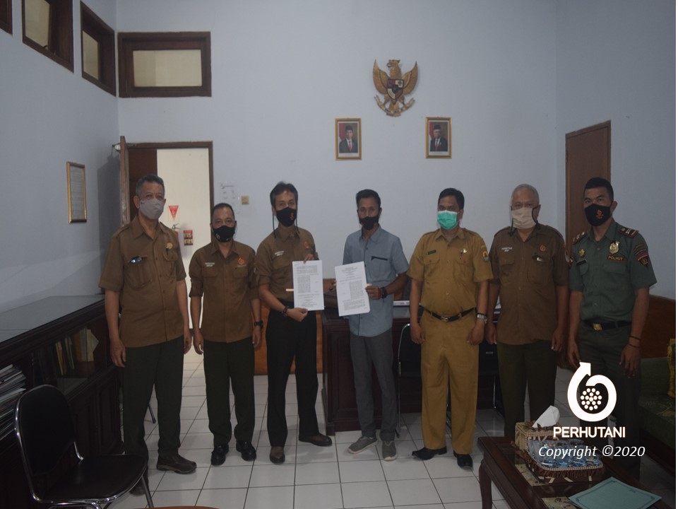 MAJALENGKA, PERHUTANI (06/10/2020) | Bertempat di ruang kerja Administratur Kesatuan Pemangkuan Hutan (KPH) Majalengka, Perhutani dan Lembaga Masyarakat Desa Hutan (LMDH) Bina Makmur menggelar penandatanganan  perpanjangan Perjanjian Kerja Sama (PKS) Wana Wisata  Batu Lawang Cirebon di petak 34a dan 34b seluas 2,70 Ha Resort Pemangkuan Hutan (RPH) Leuwimunding, Bagian Kesatuan Pemangkuan Hutan  (BKPH) Ciwaringin, Senin (05/10).
