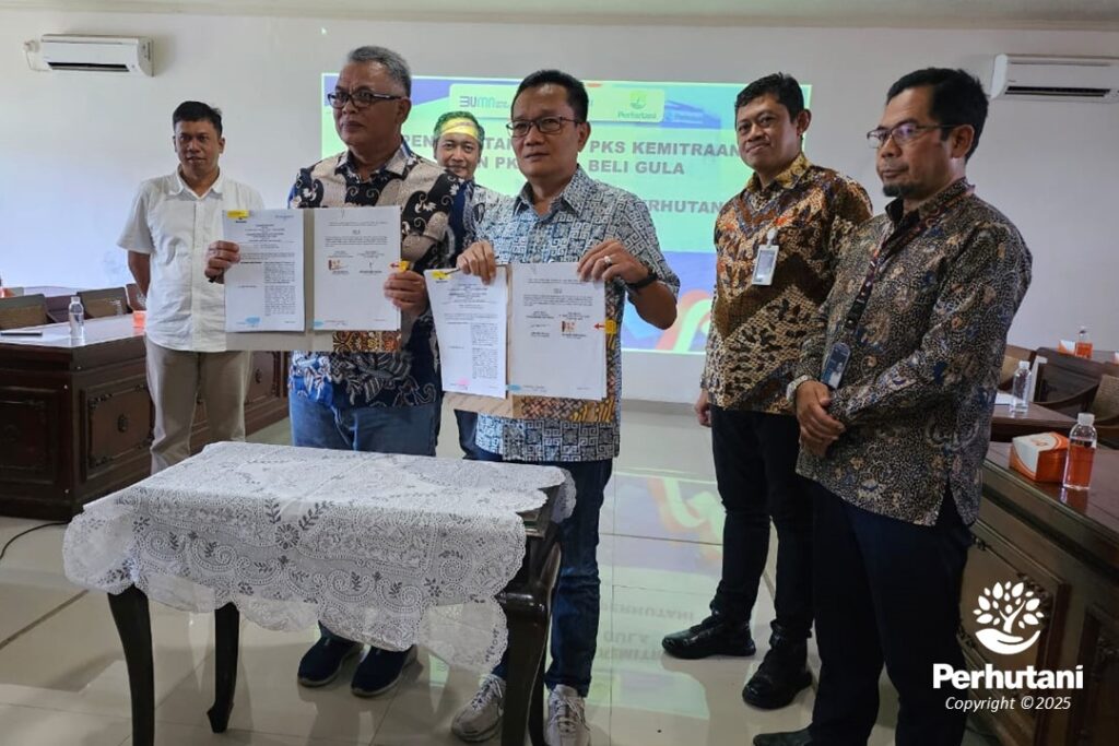 CIREBON, PERHUTANI (14/02/2025) | Perum Perhutani bersama PT PG Rajawali II resmi menandatangani Perjanjian Kerja Sama (PKS) untuk kemitraan budidaya tebu masa tanam tahun 2024/2025 di kawasan hutan yang dikelola Perhutani, kegiatan penandatanganan tersebut dilaksanakan di PT PG Rajawali II Cirebon, pada Jumat (14/02).