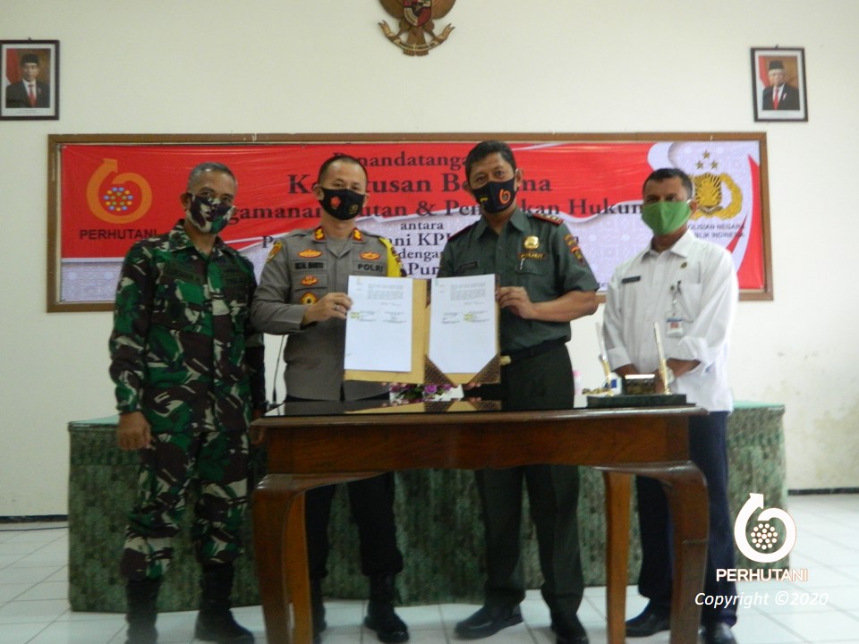 Penandatanganan dilaksanakan oleh Administratur KPH Kedu Selatan Yudha Suswardhanto dengan Kapolres Purworejo AKBP Rizal Marito. Hadir dan menyaksikan penandatanganan Dandim 0708, Kepala Badan Penanggulangan Bencana Daerah (BPBD) Kabupaten Purworejo, Kapolsek Bruno, Pituruh, Kemiri, Gebang, Bener, Loano, Kaligesing, Purwodadi, Ngombol dan Grabag.