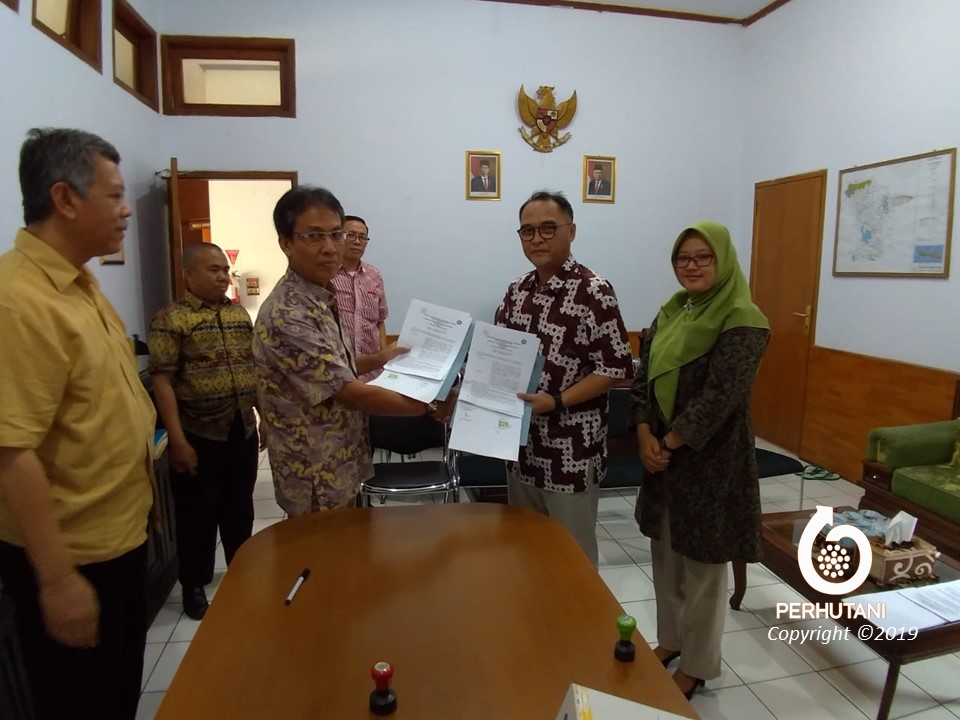 MAJALENGKA, PERHUTANI (21/11/2019) | Administratur Perhutani Kesatuan Pemangkuan Hutan (KPH) Majalengka Andi Mulya melakukan penandatanganan Perjanjian Kerjasama (PKS) Usaha Pendayagunaan Air dari kawasan hutan dengan Direkur PT. Almasoem Muamalah wilayah Majalengka Madani Awat Widuri, bertempat di kantor Perhutani KPH Majalengka, Selasa (21/09).