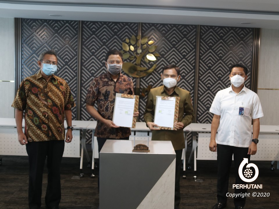 JAKARTA, PERHUTANI (27/10/2020) | Perum Perhutani Bersama PT Bumi Suksesindo (PT BSI) melakukan penandatanganan Berita Acara Serah Terima (BAST) kegiatan rebosiasi di lahan kompensasi seluas 100,32 hektar yang berada di wilayah administratif Kabupaten Bondowoso, bertempat di ruang rapat Kantor Perhutani Pusat Lt. 20 Jakarta, Selasa (27/10).