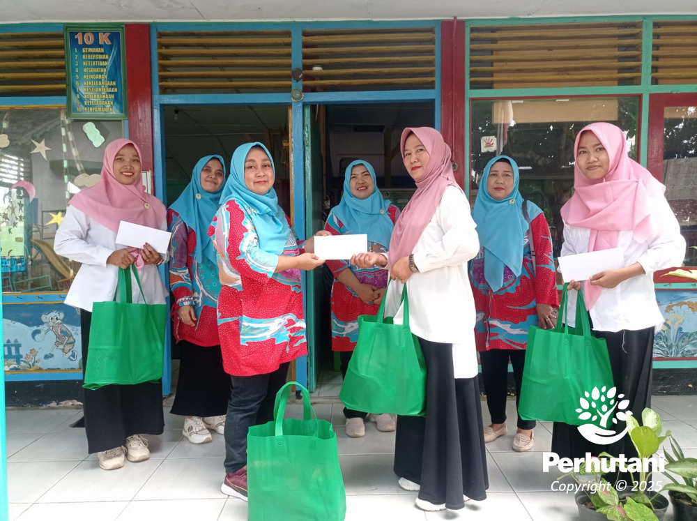 MANTINGAN, PERHUTANI (26/03/2025) | Perhutani Kesatuan Pemangkuan Hutan (KPH) Mantingan bersama Yayasan Taruna Rimba Perhutani (YTRP) memberikan bingkisan lebaran kepada para guru pendidik serta petugas jaga di TK Tunas Rimba III Sulang, Rabu (26/03).