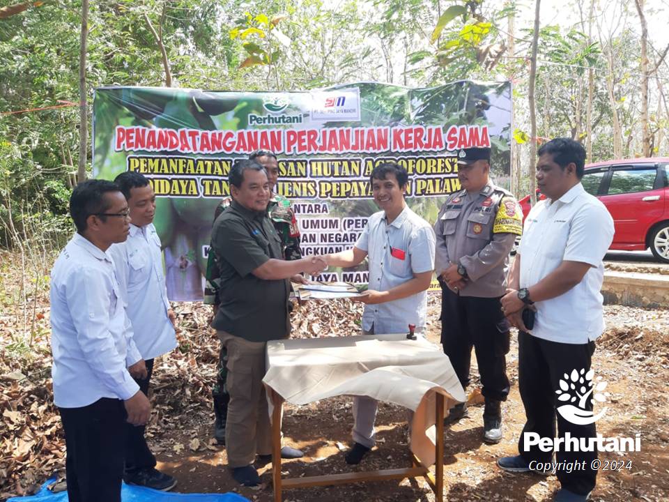 PATI, PERHUTANI (04/09/2024) | Perhutani Kesatuan Pemangkuan Hutan (KPH) Pati bersama dengan PT. Sekuping Jaya Mandiri yang berada di Desa Tubanan Kecamatan Kembang Kabupaten Jepara menandatangani kerjasama tanaman Agroforestry buah Pepaya dan Palawija, Rabu (04/09).