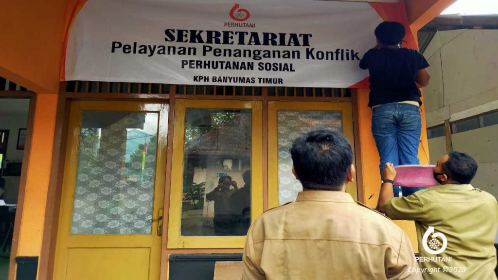 “Pendirian Sekretariat Pelayanan Penanganan Konflik Perhutanan Sosial ini merupakan tindaklanjut Peraturan Menteri Lingkungan Hidup dan Kehutanan (LHK) dan kebijakan perusahaan untuk memudahkan dalam penyelesaian apabila terjadi konflik Perhutanan Sosial. Pendirian posko ini disediakan di semua kantor BKPH yaitu dikantor BKPH Jatilawang, Kebasen, Gunung Slamet Barat, Gunung Slamet Timur dan Karangkobar.” tuturnya.