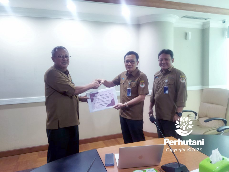 SURABAYA, PERHUTANI (02/01/2024) | Kepala Perum Perhutani Divisi Regional (Divre) Jawa Timur menyerahkan bantuan sosial Corporate Social Responcibility (CSR) perusahaan melalui program Tanggung Jawab Sosial dan Lingkungan (TJSL) secara simbolis Kepada Ketua Takmir Masjid As-Syajarah Surabaya sebesar Rp. 17 juta, dana tersebut diperuntukkan guna memenuhi kelengkapan sarana dan prasarana masjid, Surabaya, Selasa (02/01).