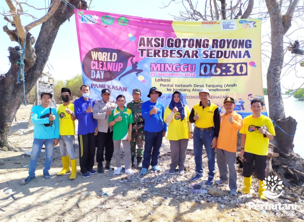 MADURA, PERHUTANI (25/09/2022) | Perhutani Kesatuan Pemangkuan Hutan (KPH) Madura mendukung aksi bersih-bersih sampah diperingatan World Clean Up Day International (WCDI) yang diperingati setiap tanggal 21 September bersama Kelompok Peduli Mangrove Madura (KPMM) di Pantai Kotasek, Desa Tanjung, Kecamatan Pademawu, Kabupaten Pamekasan, Minggu, (25/09).