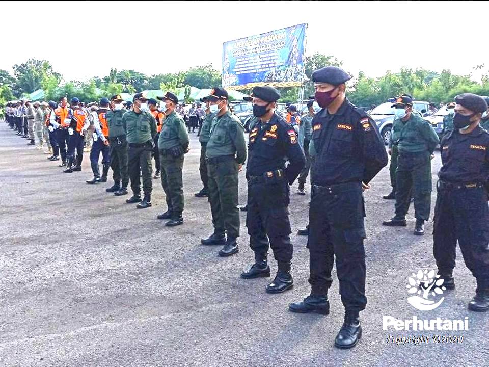 NGAWI, PERHUTANI (22/12/2020) | Dukung Operasi Lilin Semeru 2020, Perhutani Kesatuan Pemangkuan Hutan (KPH) Ngawi mengikuti Apel Gelar Pasukan yang digelar oleh Kepolisian Resor (Polres) Ngawi yang dilaksanakan di lapangan Yon Armed 12 Ngawi, Senin (21/12).