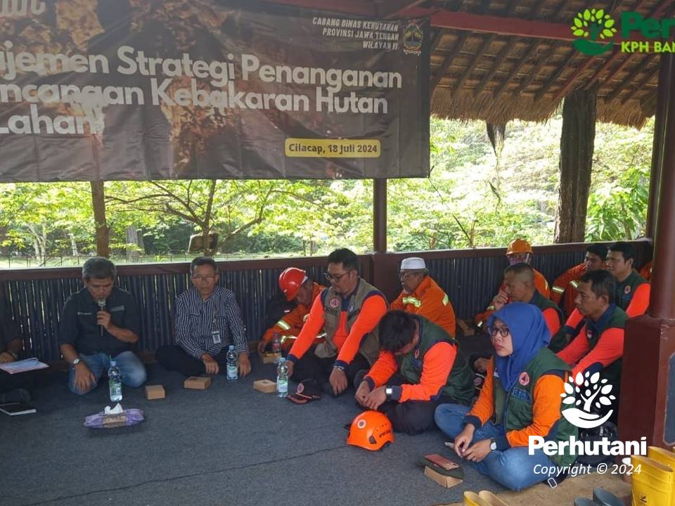 BANYUMAS BARAT, PERHUTANI (18/07/2024) | Kesatuan Pemangkuan Hutan (KPH) Banyumas Barat mendukung Cabang Dinas Kehutanan Wilayah VI Purwokerto pelatihan manajemen strategi sebagai antisipasi bahaya bencana alam kebakaran hutan dan lahan (Karhutla) di wilayah selatan serta wilayah barat Kabupaten Cilacap pada musim kemarau tahun 2024, Rabu (17/07).