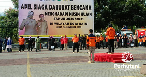 MALANG, PERHUTANI (23/11/2020) | Perhutani Kesatuan Pemangkuan Hutan (KPH) Malang mendukung upaya Pemerintah Kota (Pemkot) Batu menggelar siaga darurat bencana menghadapi musim hujan tahun 2020 bertempat di halaman belakang Balaikota Among Tani, Kota Batu, Jumat (20/11).