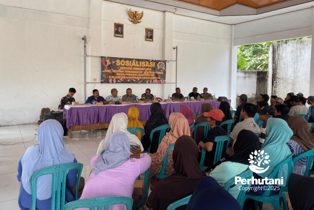 MOJOKERTO, PERHUTANI (11/09/2025) | Perum Perhutani Kesatuan Pemangkuan Hutan (KPH) Mojokerto menghadiri sosialisasi rencana pembangunan Batalyon Teritorial Pembangunan (BTP) 887/KJM di wilayah Korem 082/CPYJ yang digelar Kodim 0812 Lamongan melalui Koramil 0812/06 Ngimbang, bertempat di Balai Desa Kakatpenjalin Lamongan, Kamis (11/9).