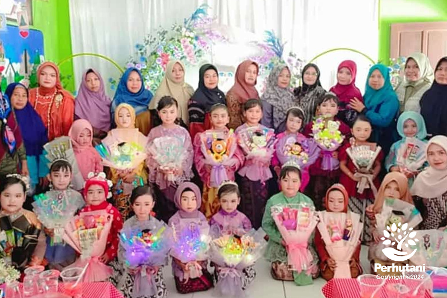 MOJOKERTO, PERHUTANI (22/07/2024) | Perum Perhutani Kesatuan Pemangkuan Hutan (KPH) Mojokerto menunjukkan dukungannya terhadap Yayasan Taruna Rimba Perhutani (YTRP) Cabang Mojokerto dengan menggelar serangkaian kegiatan seni dalam rangka menyambut Hari Anak Nasional (HAN) ke-40 Tahun 2024. Acara tersebut berlangsung di Taman Kanak-Kanak (TK) Tunas Rimba I Kambangan, pada Senin (22/07). Tema HAN ke-40 tahun ini adalah “Anak Terlindungi, Indonesia Maju”.