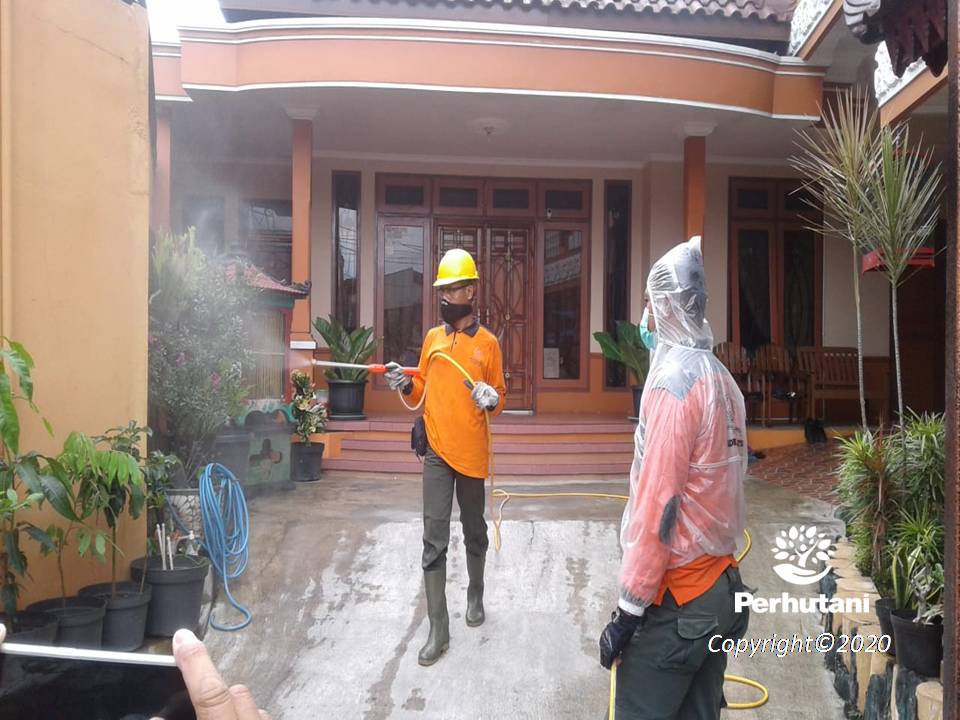 KEDU UTARA, PERHUTANI (22/01/2021) | Sebagai wujud kepedulian dalam menghadapi Covid-19, Polisi Hutan Mobil (PolHutMob) Perhutani Kesatuan Pemangkuan Hutan (KPH) Kedu Utara bekerja sama dengan Dinas Kesehatan (Dinkes) Magelang melakukan penyemprotan disinfektan di wilayah Magelang Utara, Jum’at (22/01).