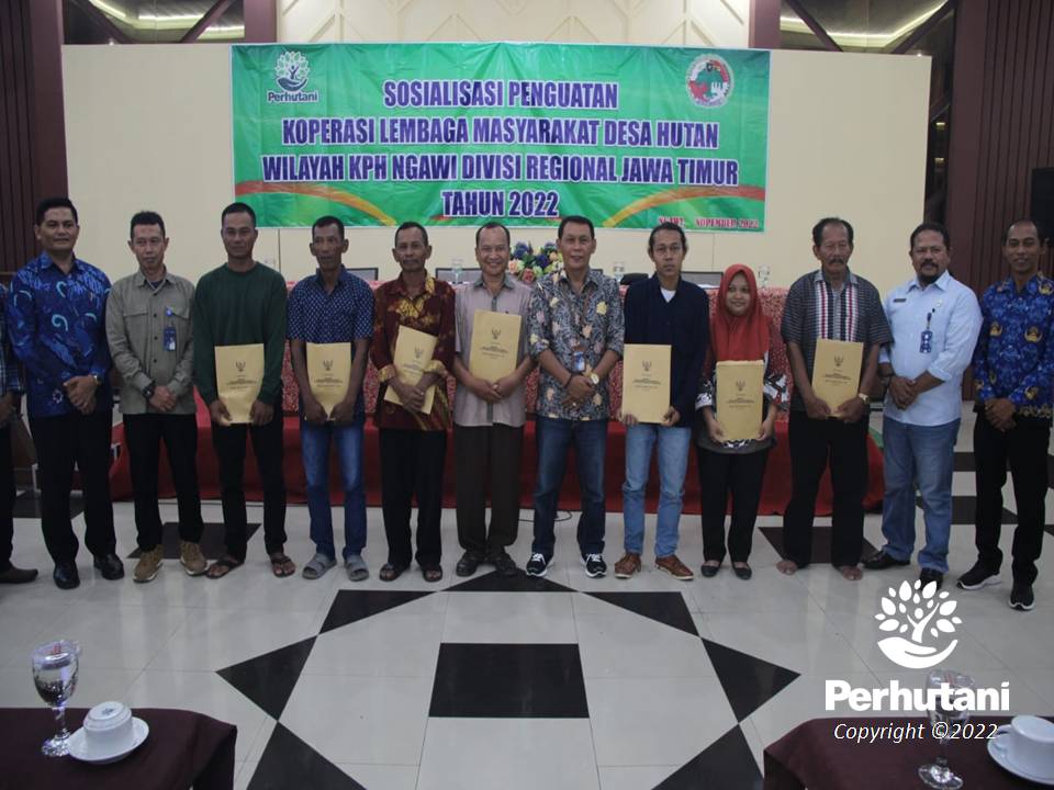 NGAWI, PERHUTANI (17/11/2022) | Perhutani Kesatuan Pemangkuan Hutan (KPH) Ngawi menggandeng Dinas Koperasi Kabupaten Ngawi melakukan Sosialisasi Penguatan Koperasi kepada sejumlah usaha koperasi yang dikelola Lembaga Masyarakat Desa Hutan (LMDH) se-wilayah Ngawi bertempat di Hall Notosuman Ngawi, Kamis (17/11).