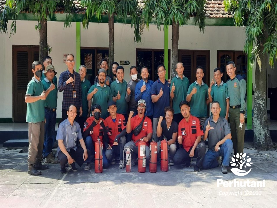 SURAKARTA, PERHUTANI (26/05/2023) | Kesatuan Pemangkuan Hutan (KPH) Surakarta bersama CV. Mandiri Agung Surakarta (MAS) mengadakan pelatihan penggunaan Alat Pemadam Api Ringan (APAR) di halaman kantor KPH Surakarta, Jumat (26/05).