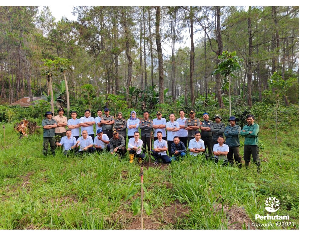 GARUT, PERHUTANI (30/11/2023) | Peringati Hari Menanam Pohon indonsesia (HMPI) dan Gerakan Pemulihan Daerah Aliran Sungai (GP-DAS), Perum Perhutani Kesatuan Pemangkuan Hutan (KPH) Garut melakukan penanaman pohon bersama Lembaga Masyarakat Desa Hutan (LMDH) Sawargi, berlokasi di Petak 23 D Resort Pemnagkuan Hutan (RPH) Tarogong, Bagian Kesatuan Pemangkuan Hutan (BKPH) Leles, pada Selasa (28/11).