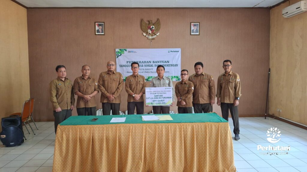 GARUT, PERHUTANI (19/10/2024) | , Perhutani Kesatuan Pemangkuan Hutan (KPH) Garut menyalurkan bantuan uang senilai Rp 15 juta kepada Madrasah Diniah Takmiliah Awaliah (MDTA) Al Dira untuk perbaikan prasarana pendidikan. Penyerahan bantuan berlangsung di Kantor Perhutani Garut pada hari Rabu (16/10).